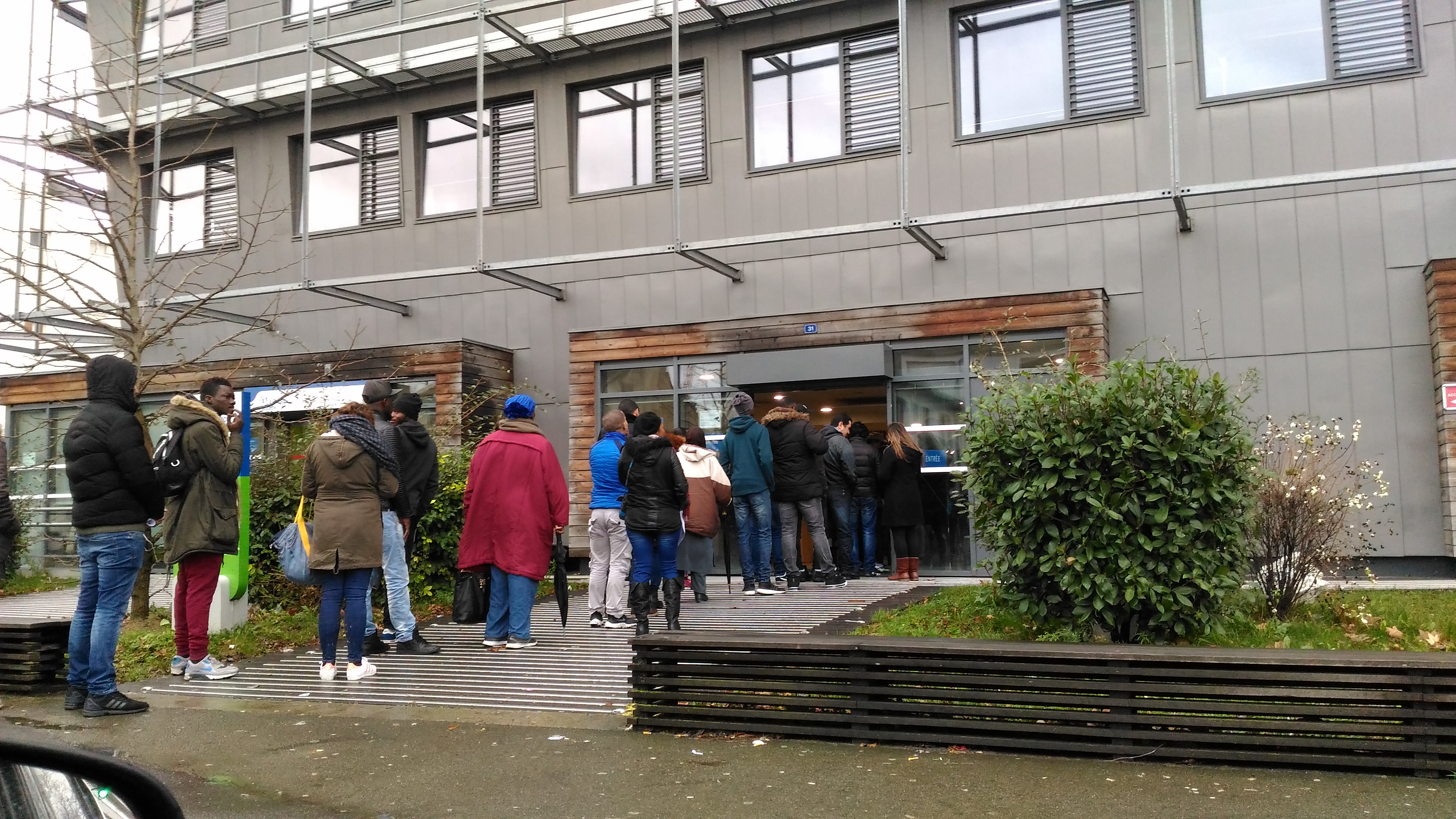 Une queue interminable, le personnel espère que les assurés abandonnent leurs droits. La photo est prise le 4 janvier 2018. Bonne année.